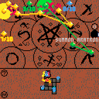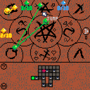 In Path of Aratron, you can send a little demon to visit Dreams. You can control the demon by placing stones on Glyphs.
